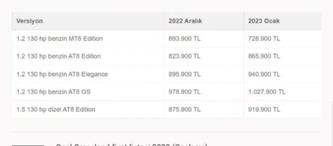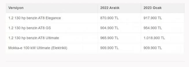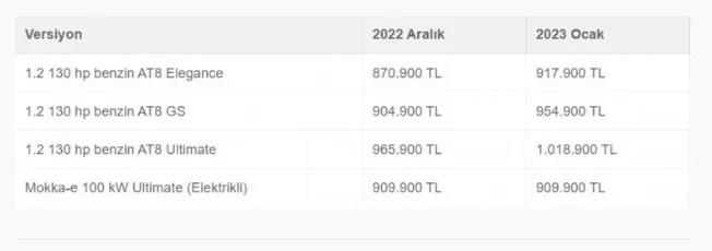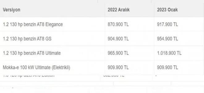 İşte 2022 yılı modellerine gelen yeni yıl zammı ile birlikte netleşen Opel 2023 sıfır araç fiyatları...