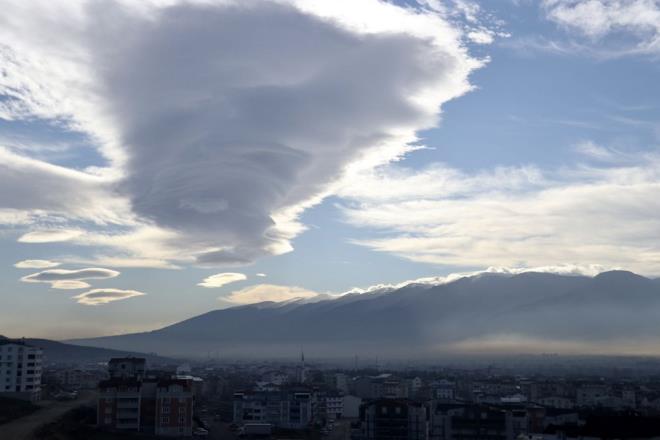 Kent merkezinden bakıldığında Uludağ'ın silüetiyle bütünleşen bulutun, öncekine göre daha büyük olması dikkati çekti.