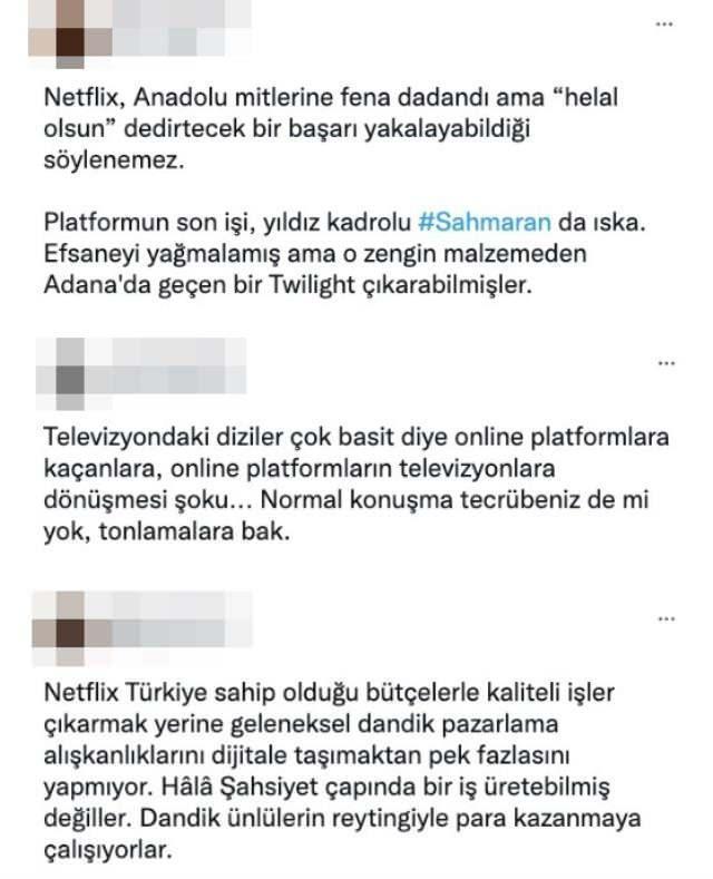 20 Ocak tarihinde dijital platform Netflix'te yayına sunulan Şahmaran dizisi, beklentilerin altında bir izlenme oranı yakaladı. Anadolu'nun en önemli efsanelerini konu alan Şahmaran dizisinin başrol oyuncuları Serenay Sarıkaya ve Burak Deniz'in performansı izleyiciden geçer not alamadı.