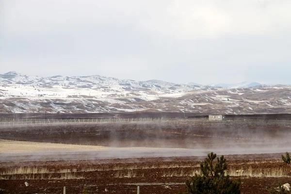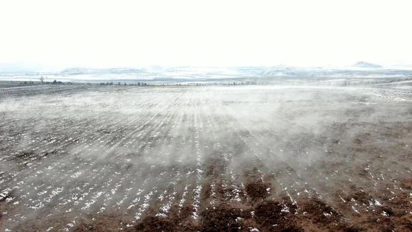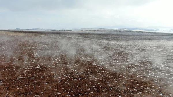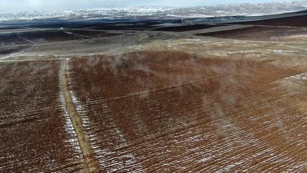 Sivas?ın Hafik ilçesinde çevresi karla kaplı olmasına rağmen kar tutmayan ve su buharı yükselen tarla merak konusu oldu, tarlada araştırma yapılması istendi.
