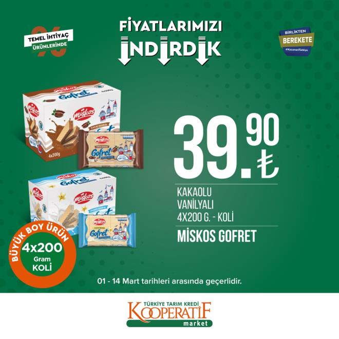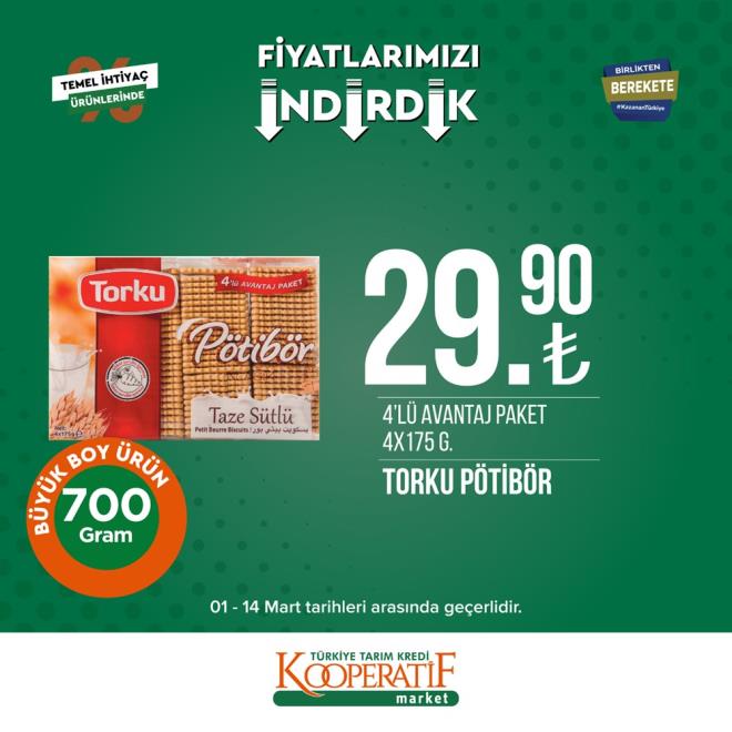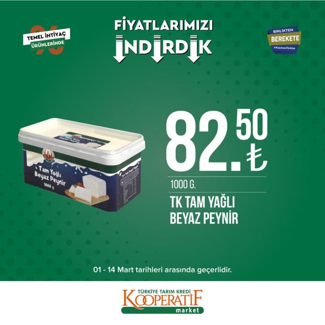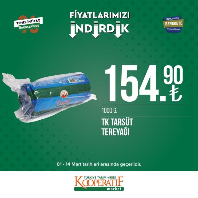 12-14 MART İNDİRİMLİ ÜRÜNLER LİSTESİ Öte yandan Tarım Kredi Kooperatif Marketleri'nde mart ayına özel güncel indirimli ürünler listesi yayınlandı. 12-14 Mart tarihleri arasında temel ihtiyaç ürünlerinde birçok yeni indirimler yer alıyor. İşte Tarım Kredi Kooperatif Market güncel indirimli ürünler listesi;