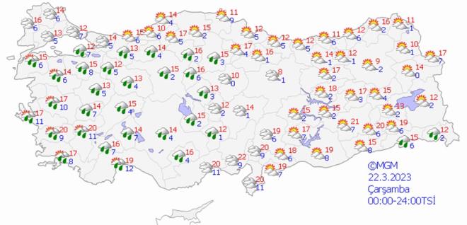 Meteoroloji Genel Müdürlüğü (MGM) 20-26 Mart tarihleriyle ilgili hava tahmin raporu yayımladı.