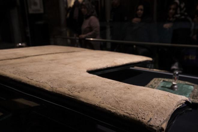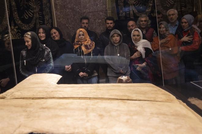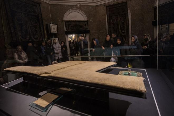 Ziyaret sırasında salavat getiren bazı vatandaşlar, Hırka-i Şerif, Sakal-ı Şerif, Veysel Karani'nin namaz takkesi ve kemerini görünce duygulu anlar yaşadı.