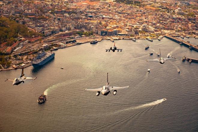 Milli Savunma Bakanlığı (MSB), TEKNOFEST kapsamında İstanbul Boğazı üzerinde selamlama uçuşu gerçekleştiren Türk Hava Kuvvetlerine ait savaş uçaklarının fotoğraflarını paylaştı.