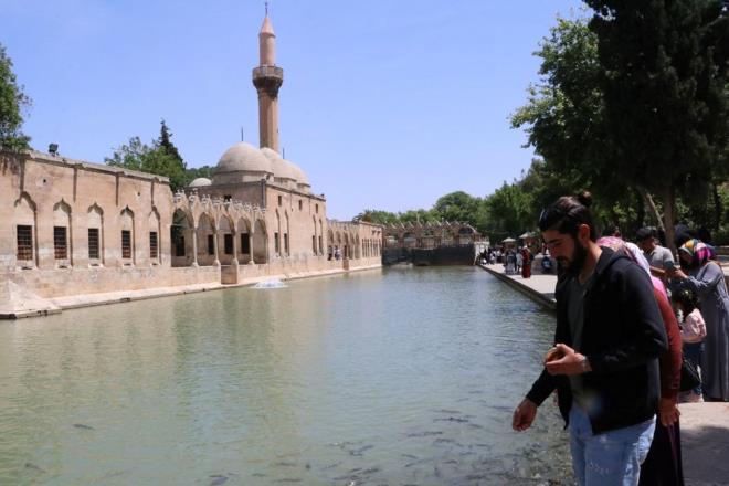 Kahramanmaraş merkezli depremler ve ardından meydana gelen sel felaketlerinin etkilediği Şanlıurfa'da, kentin simgesi Balıklıgöl'ün suyunun rengi çamura döndü ve bazı noktalarında hasar oluştu.