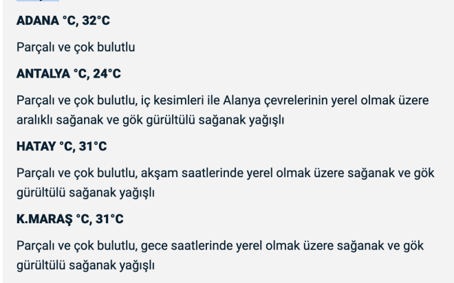AKDENİZ BÖLGESİNDE HAVA DURUMU NASIL OLACAK? Parçalı ve çok bulutlu, bölgenin iç kesimleri ile Alanya ve Hatay çevrelerinin yerel olmak üzere sağanak ve gök gürültülü sağanak yağışlı geçeceği tahmin ediliyor.