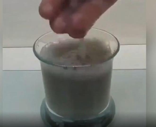 Demir kaşığı adeta granül kahve gibi çözeltinin içinde eriten madde, yeterince enteresan değilmiş gibi deneyi yapan kişi, bir de elinde bulunan eldiveni çıkarıp maddenin içine daldırdı.O anları izleyenler, adamın eli için büyük bir endişeye kapıldı.