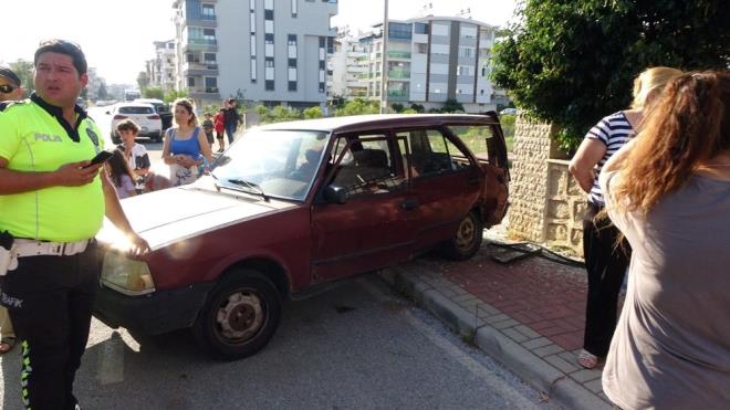 Antalya?nın Manavgat ilçesinde ehliyet sınavına hazırlanan Elif Özdemir?in kullandığı 07 LF 700 plakalı otomobil, geri geri giderken yolun karşısındaki bahçe duvarına çarptı.