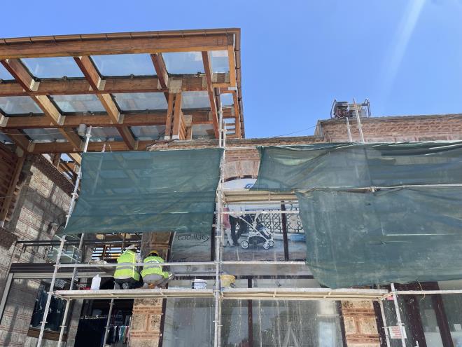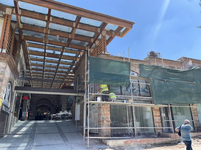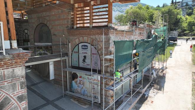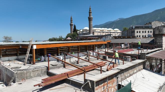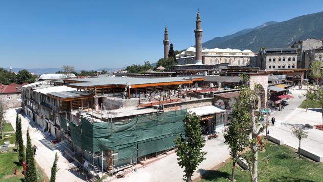 Bursa'nın kalbi olan Tarihi Çarşı ve Hanlar Bölgesi'nde yılların hayali olan 38 binayı yıkıp, restorasyonla Sağrıcı Sungur Mescidini gün yüzüne çıkaran Büyükşehir Belediyesi, artık daha görünür hale gelen tarihi hanlarda da restorasyon çalışmalarına başladı.