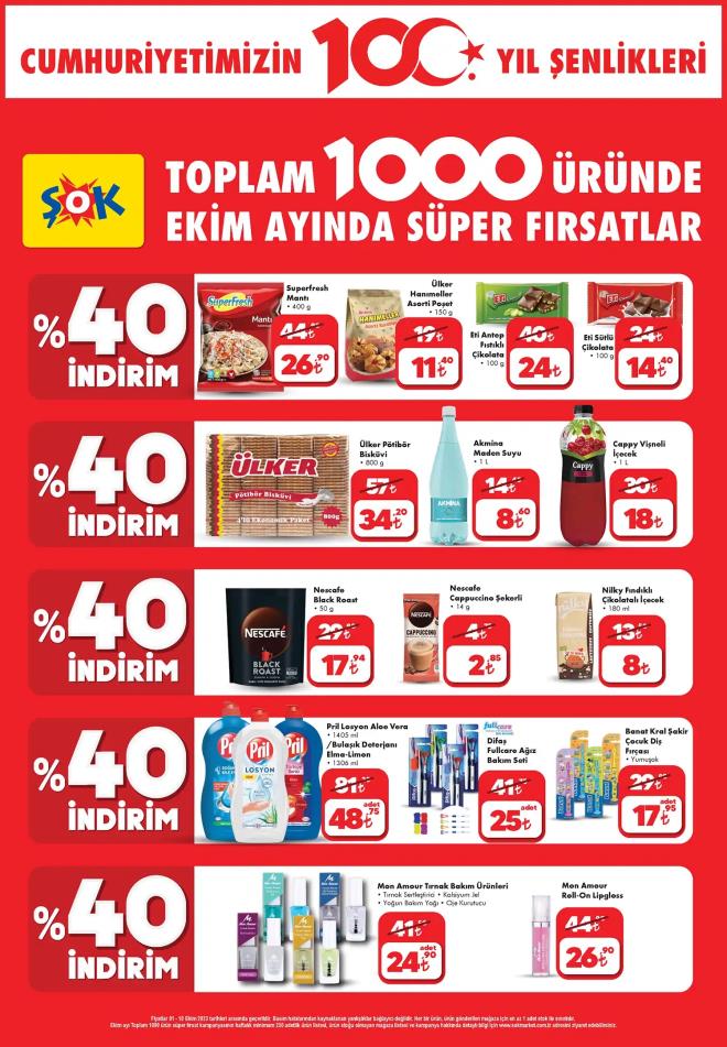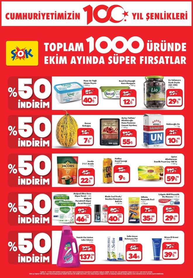 ŞOK'ta Cumhuriyet'in 100. Yılına Özel 1000 Üründe İndirim!