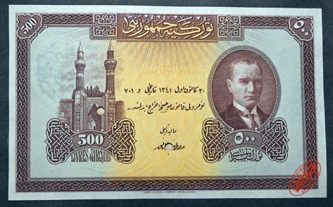 1925 sonunda Türkiye Büyük Millet Meclisi'nde kabul edilen "Mevcut Evrak-ı Nakdiyenin Yenileriyle İstibdaline Dair Kanun" ile basılan Türkiye Cumhuriyeti'nin banknotları arasında 1 lira, 5 lira, 10 lira, 500 lira ve 1000 liralık banknotlar bulunuyor.