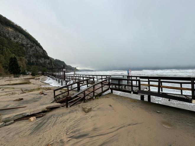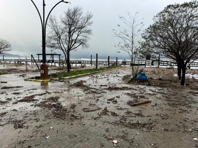 Kentte dün sabah saatlerinden sonra başlayan kuvvetli fırtına ve beraberinde oluşan dalgalar, Güzelcehisar Sahili'ndeki yürüyüş yoluna, çay bahçelerine, büfelere ve piknik alanına zarar verdi.