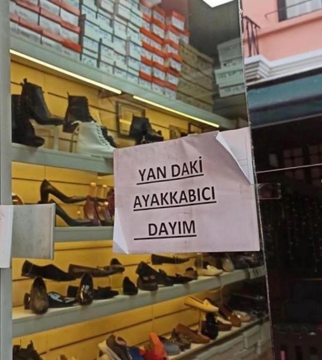Yurdum esnafı pratik zekaya, geniş hayal gücüne ve doğal bir espri yeteneğine sahiptir. Bu durumun bir örneği de esnafımızın dükkanlarında karşılaşılan uyarı yazıları. Başka ülkede yaşayamam dedirten mizahta sınır tanımayan yurdum esnafının trajikomik yazıları