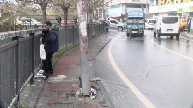 Esenyurt Hürriyet Mahallesi'nde vatandaşlar sel akan yolda karşıdan karşıya geçmekte zorlanırken bir veli çocuğu ile karşıdan karşıya geçmeye çalışırken akıntı nedeni ile yere düştü.