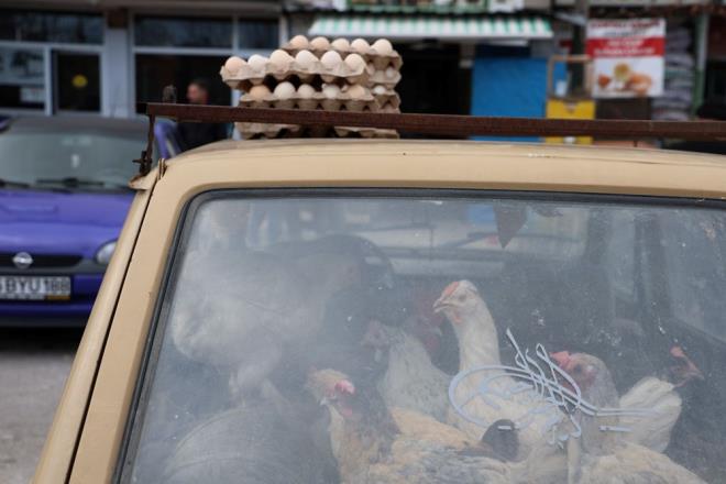Mehmet Kasalak?tan yumurta almaya gelen vatandaşlar ise araçta tavukların gezdiğini görünce çok şaşırıyorlar. Kasalak'tan aldıkları yumurtaların daha lezzetli olduğunu düşünen de var.