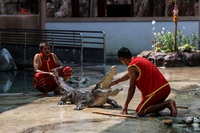 Taylan'ın Samut Prakan kentinde Covid-19 önlemleri kapsamında 3 yıl önce kapatılan timsah çiftliği yeniden açıldı.