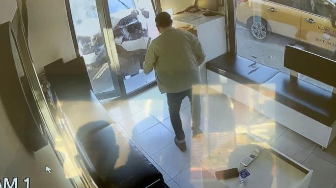 Kaza anı taksi durağının güvenlik kamerasınca görüntülendi.