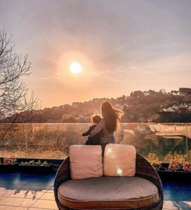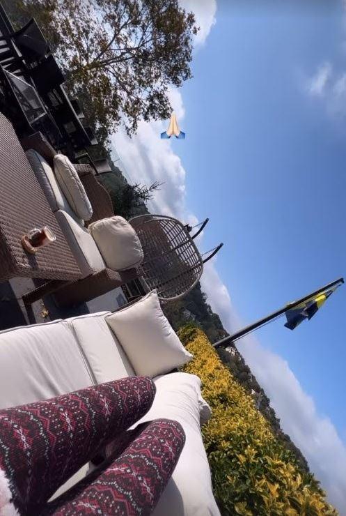 Ünlü oyuncu evinin bahçesinden keyif yaptığı anları Instagram hesabı üzerinden paylaştı.