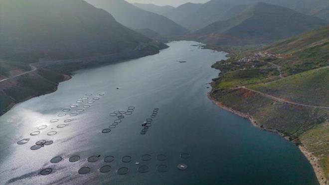 Adıyaman'ın Çelikhan ilçesinde bulunan 1450 rakımlı Çat Barajı'nda yılın 12 ayında 'kafes balıkçılığı' yapılabiliyor.