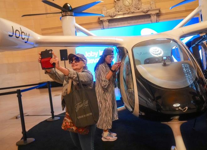 Joby Aviation firmasının, Japon otomobil devi Toyota'dan aldığı 894 milyon dolarlık yatırım desteğiyle ürettiği elektrikli hava taksisi, New York'taki görücüye çıktı.