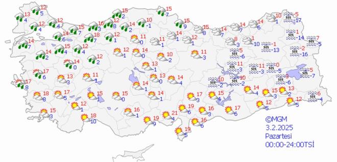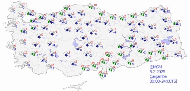 İstanbul'da salıdan itibaren gerçekleşmesi beklenen günün en düşük ve en yüksek hava sıcaklıklarının 2/5 derece olmasının beklendiği kaydedildi. Soğuk havanın, kuzey yönlerden kuvvetli esmesi beklenen rüzgarlarla birlikte bir haftalık periyotta etkisini sürdürmesinin beklendiği aktarılan açıklamada, bu periyotta karla karışık sağanak ve kar yağışı görüleceğinin tahmin edildiği belirtildi.