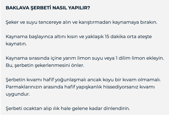 BAKLAVA ŞERBETE NASIL YAPILIR? 1. Şerbetin Malzemeleri 3 su bardağı toz şeker 3 su bardağı su Yarım limonun suyu veya 1 dilim limon