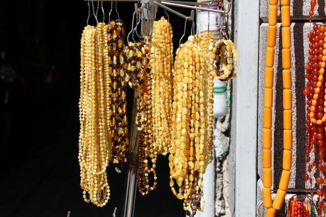 Kehribar taşından yapılan tespih ve kolyelere vatandaşlar yoğun ilgi gösteriyor.