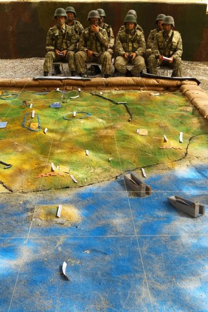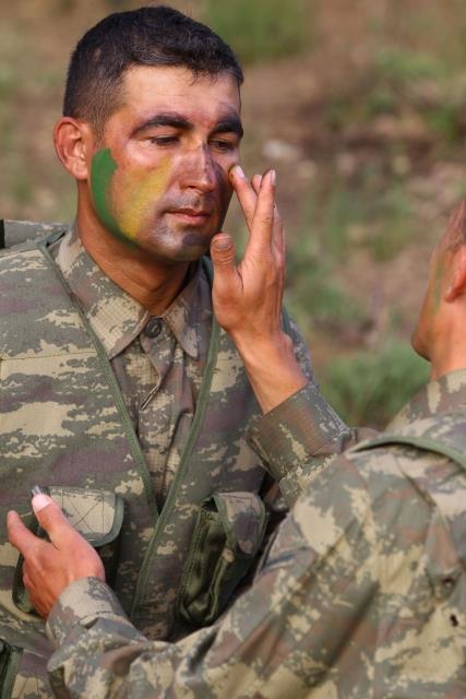 Tatbikatın tek kadın subayı olan teğmen Duygu Hazıray, bu kez kamuflaj için makyaj yaptı.