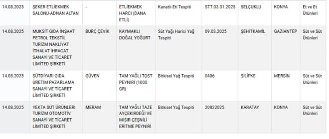 Tarım ve Orman Bakanlığı, taklit ve tağşiş yaptığı belirlenen firmaları ve sağlığı tehlikeye düşürecek gıdaları bir kez daha kamuoyuyla paylaştı.