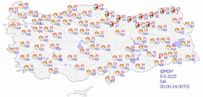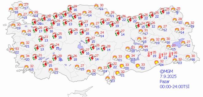 MGM 7 GÜNLÜK RAPORU PAYLAŞTI Meteorolojinin 7 günlük tahmin raporuna göre, hava sıcaklıkları biraz azalarak mevsim normalleri civarına inecek.