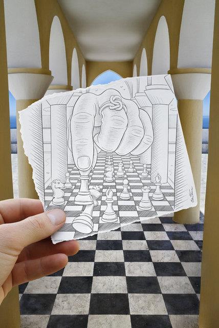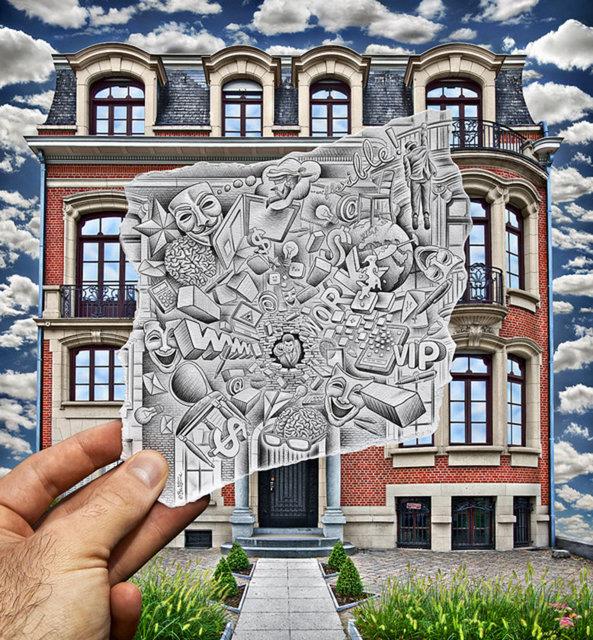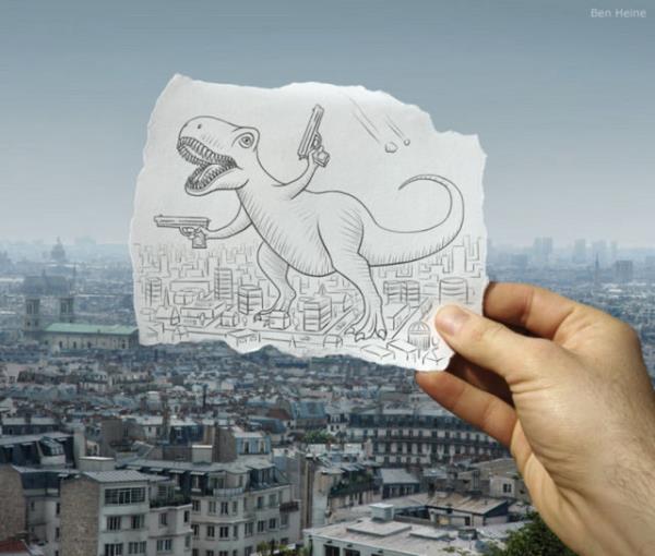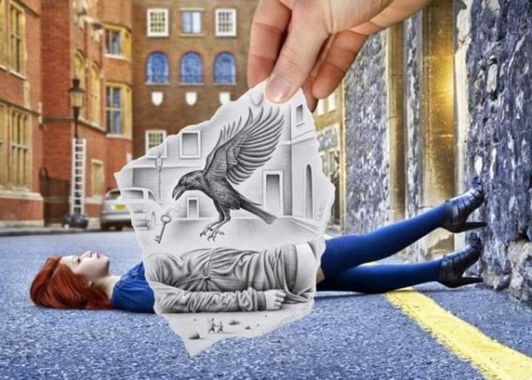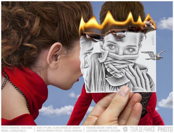 Belçikalı sanatçı Ben Heine, 'Pencil vs.Camera' adını verdiği fotoğraf ile çizimleri, gerçek ile hayali karıştırmanıza neden oluyor.