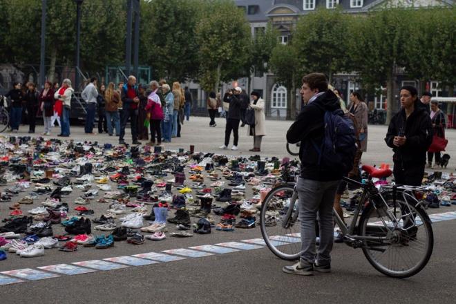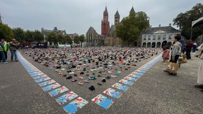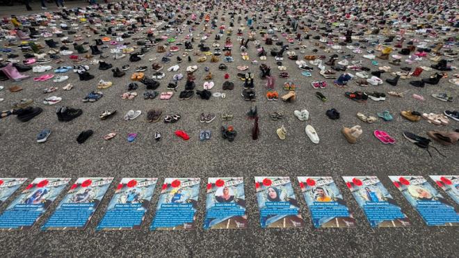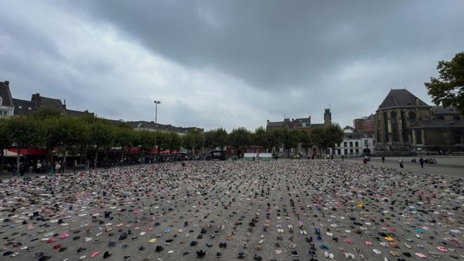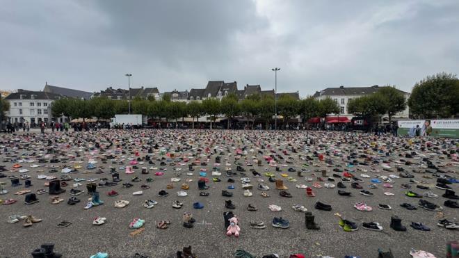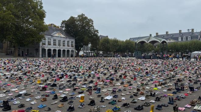 Binlerce çocuk ayakkabısı da meydana bırakıldı.