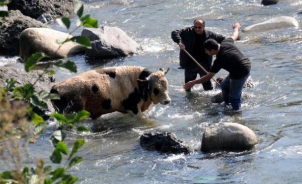 Rize'de bir kurbanlık Salarha Deresi'ne kaçtı.