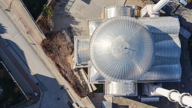 Yol ve duvar cami bahçesinin üzerine yıkıldı