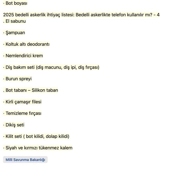 BEDELLİ ASKERLİK İHTİYAÇ LİSTESİNDE NELER OLMALI?