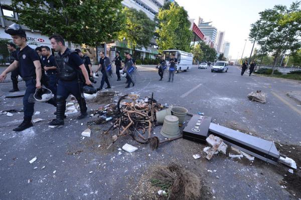 Başkentte gece boyunca süren olaylarda, göstericiler Atatürk Bulvarı'nda barikat kurarak, çöp konteynerlerini, bankları ve bir güvenlik kulübesini ateşe verdi. Caddeyi trafiğe kapan eylemciler, Türkiye Büyük Millet Meclisi'nin bahçesine de taşlarla saldırdı. Uyarılara rağmen dağılmayan gruba, polis, biber gazı ve tazyikli suyla müdahale etti.