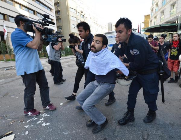 Taksim Gezi Parkı'nda yaşanan olayları protesto eden bazı sivil toplum kuruluşları, sendika ve siyasi parti üyelerinin de aralarında bulunduğu grup, başkentte protesto gösterisi yaptı. Atatürk Bulvarı'nda güvenlik amacıyla bekleyen TOMA aracına saldıran gruba tazyikli suyla müdahale edildi.