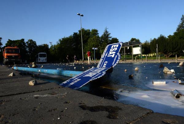 Ankara'da, Taksim Gezi Parkı'ndaki olayları protesto eden grubun eylemlerinin ardından, belediye ekipleri sabahın erken saatlerinde caddeleri temizledi. Göstericiler, bir kafenin girişinde bulunan süs ağacını söktü.