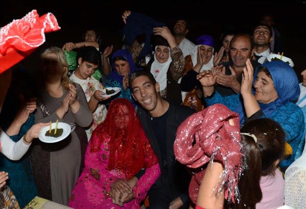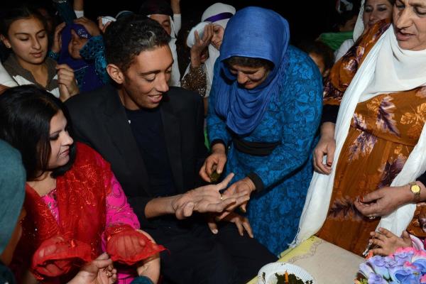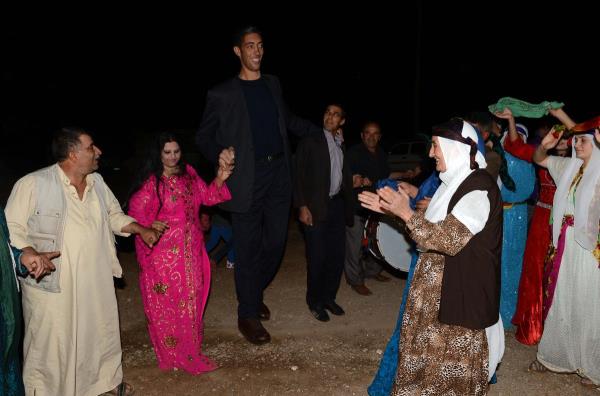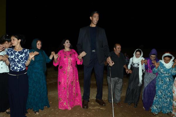 2 metre 51 santimetre boyu ile "dünyanın en uzun boylu adamı" unvanını koruyan Sultan Kösen dünya evine giriyor. Mardin'in Derik ilçesine bağlı Dede köyünde yaşayan, boyunun yanısıra 27,5 santimetre uzunluğundaki el ve 36,5 santimetrelik ayaklarıyla da Guinness Rekorlar Kitabı'na giren ve yaklaşık 5 yıldır rekoru kimseye kaptırmayan dev adam Kösen, "hayatımın aşkı" dediği Suriye asıllı Merve Dibo (solda) ile hayatını birleştiriyor. Sultan Kösen ve Merve Dibo için Dede Köyde kına töreni düzenlendi.