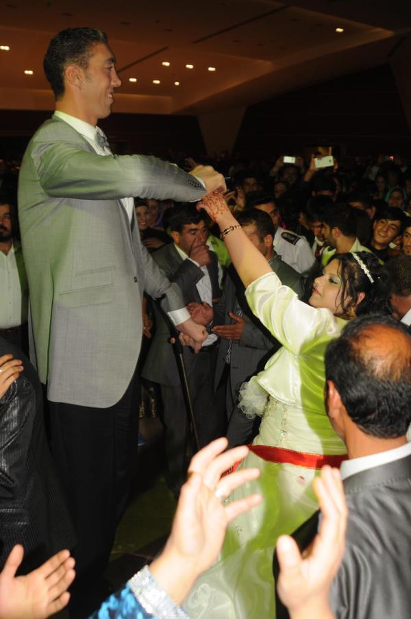 ''Dünyanın en uzun boylu adamı'' unvanını 2 metre 51 santimetre boyu ile koruyan Sultan Kösen ile Suriye asıllı Merve Dibo, Mardin'de yapılan düğünle dünya evine girdi. Düğün salonunda gelin ile damat dans etti