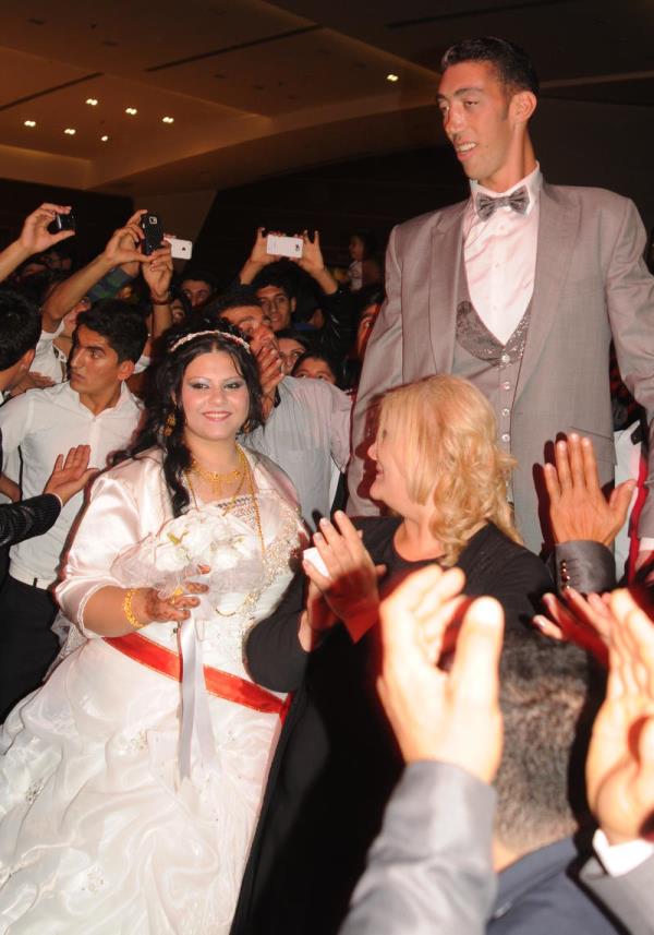 ''Dünyanın en uzun boylu adamı'' unvanını 2 metre 51 santimetre boyu ile koruyan Sultan Kösen ile Suriye asıllı Merve Dibo, Mardin'de yapılan düğünle dünya evine girdi. Düğün pastasını Damat ile gelin beraber kesti.