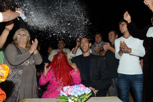 ''Dünyanın en uzun boylu adamı'' unvanını 2 metre 51 santimetre boyu ile koruyan Sultan Kösen ile Suriye asıllı Merve Dibo, Mardin'de yapılan düğünle dünya evine girdi.