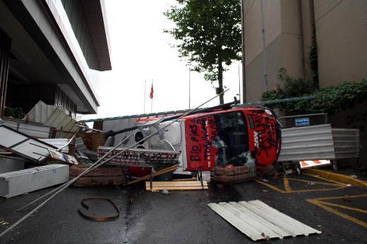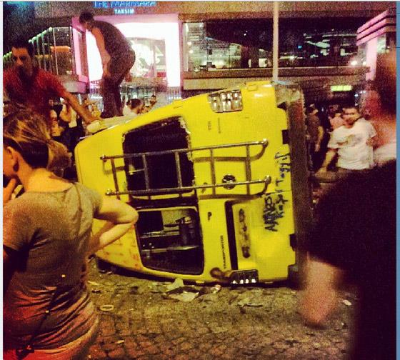 ROTAHABER / ÖZEL - Gezi Parkı'ndaki sözde ağaçların kesilmemesi için yapılan gösterilerle başlayan olaylar son 2 gün içinde terör olaylarına dönüştü. Bir dönem şehri bu hale PKK'lı teröristler getirirken onları kınayanlar, bu kez kendileri İstanbul'u bu hale getirdi. Sivil araçları yaktılar, esnafı tartaklayıp, işyerlerini yağmaladılar, muhabirlere saldırdılar, canlı yayın araçlarını ateşe verdiler. Tüm bunları da sözde ağaçlar kesilmesin diye yaptıklarını iddia ettiler. İşte son 2 günde ortaya çıkan bu görüntüler, kişilerin asıl niyetini bir kez daha ortaya koydu. Günlerdir bu kişilere destek veren ve sokağa dökenler gazeteci-yazar, siyasetçi ve sözde aydınlar bu görüntülere bakıp kendileriyle gurur duysunlar. İşte demokratik hak dedikleri o kareler...