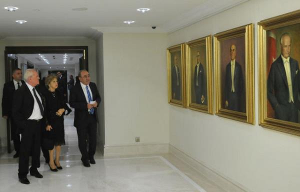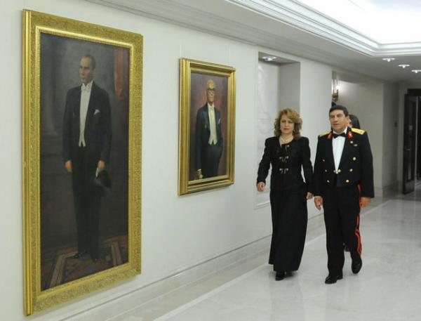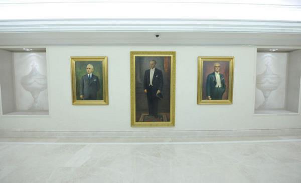 Cumhurbaşkanlığı yetkililerinden alınan bilgiye göre, Atatürk'ün 1933'te yapılan yağlı boya tablosuyla Azeri asıllı ressam Cevat Süleymanpur tarafından tuvale yansıtılan diğer 9 cumhurbaşkanına ait yağlı boya tablolar,