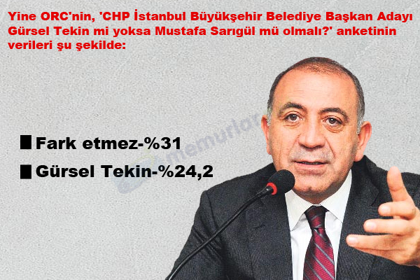 Anketlere göre seçimde 3 Büyükşehirde herhangi bir sürpriz sonuç çıkmazken İstanbul'da CHP'den adaylık beklentisinde olanların (Sarıgül/Tekin) aslında birbirlerine oldukça yakın desteğe sahip oldukları ortaya çıktı.