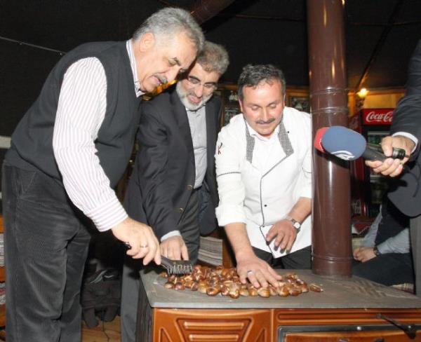 İki bakan daha sonra soba başına geçip, kestaneleri pişirip, restoranda bulunan gazeteci ve partililere ikram etti.