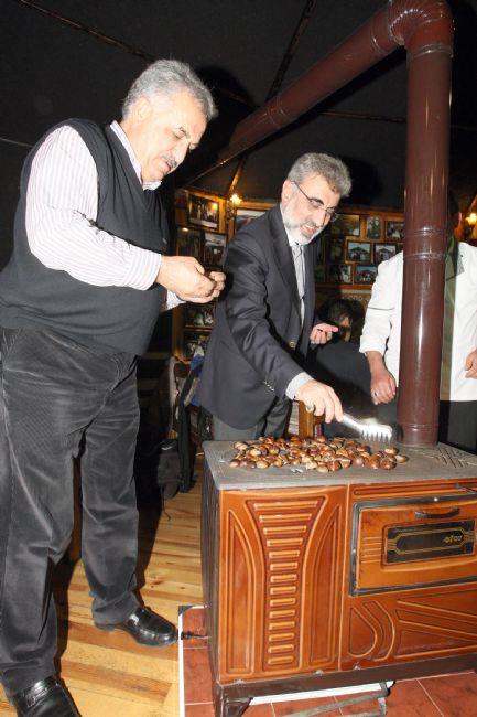 Dün akşam toplantılarını tamamladıktan sonra geç saatlerde kaldıkları otel yakınında bulunan 'Tarihi Kıl Çadırı Restoran'da yemek yiyen Bakan Yıldız ve Yazıcı, burada kendilerine ikram edilen soba üzerinde pişirilen kestaneden yedi.