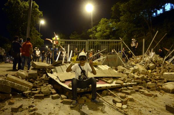 Taksim Gezi Parkı'ndaki olayları protesto için Ankara Kızılay'da toplanan gruba polis müdahale etti. Sokak aralarına dağılan bazı göstericiler barikat kurarak bir büfeyi ateşe verdi.Yanan ateşi TOMA söndürdü