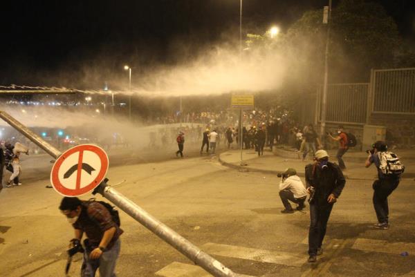 Gece yarısı Beleştepe mevkisinden Gümüşsuyu caddesinden Dolmabahçe'ye doğru inen gösterici gruba çevik kuvvet gaz bombası ve TOMA araçlarından sıkılan tazyikli suyla müdahale etti