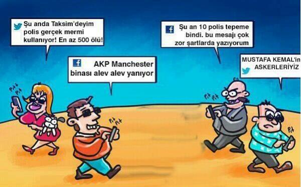 Sol geleneğin alışılmış sloganları, Twitter ve Facebook gibi sosyal medyanın hayatımıza hızla girişiyle yerini çok daha yaratıcı eylem tarzlarına bıraktı. Karikatürler çizildi, videolar paylaşıldı, eylemi eleştiren açıklamalara atıf yapıldı. Polisin göstericilere gaz bombası kullanması sık sık ti'ye alındı. Sosyal medyada paylaşılan görüntüler kimi zaman kırıp geçirdi.